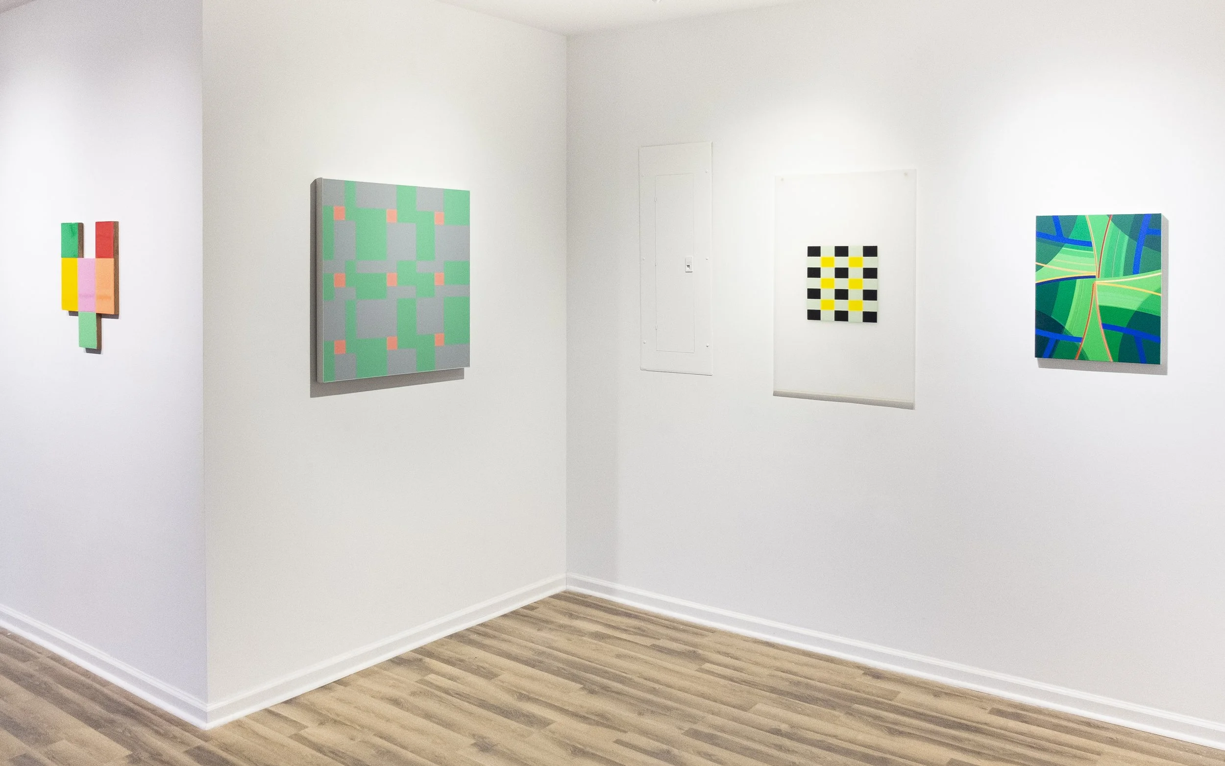 Pattern Space brings together four artists—Jacob Cartwright, Victoria Palermo, Daniel G. Hill, and Sonita Singwi—whose practices converge around questions of structure, visual movement, and spatial logic. Across painting and sculpture, geometry becomes both a framework and a generative force. In this exhibition, pattern, folded planes and intersecting geometries create a field where precision and intuition coexist. Forms hinge, balance, and expand, revealing the quiet mechanics that shape perception. Through shifts in proportion, rhythm, and light, abstraction becomes a system in motion—its order provisional, its equilibrium continually redefined. Rather than fixing meaning, Pattern Space invites the viewer to engage with the active structures that govern visual experience. Each work, distinct in material and approach, contributes to an evolving dialogue about how we measure, construct, and inhabit space through the language of abstraction.