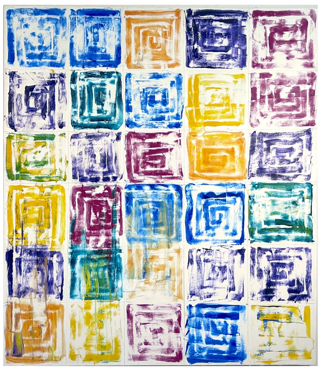 Gordon engages the grid as both armature and site of activation. Beneath looping lines lies a disciplined framework that anchors each composition. Gesture does not dissolve this order; it tests and reanimates it. Saturated fields of color generate spatial tension while maintaining the integrity of the picture plane, extending the modernist dialogue between geometry and expression into the present.